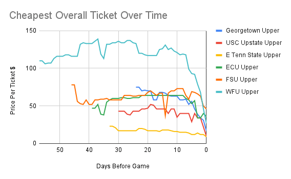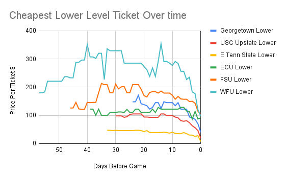 But watch out! Ticket prices, especially for lower level tickets, can spike in the final minutes leading up to the game (ECU, FSU, and WFU)