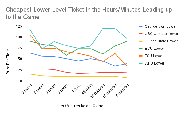 But watch out! Ticket prices, especially for lower level tickets, can spike in the final minutes leading up to the game (ECU, FSU, and WFU)